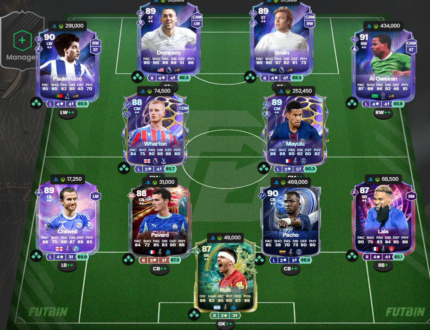 Skład, którym była testowana przez nas formacja 4-2-4 w grze EA FC 26: